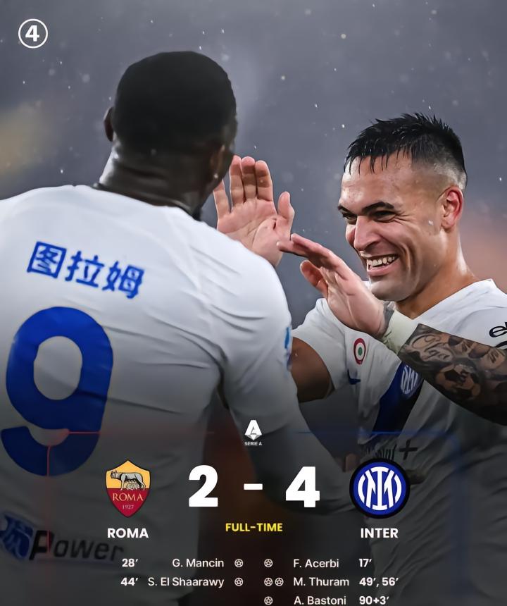 首先,最好的莫过于球队赢球了!在意甲第24轮的一场比赛中,国米客场4:2击败罗马。