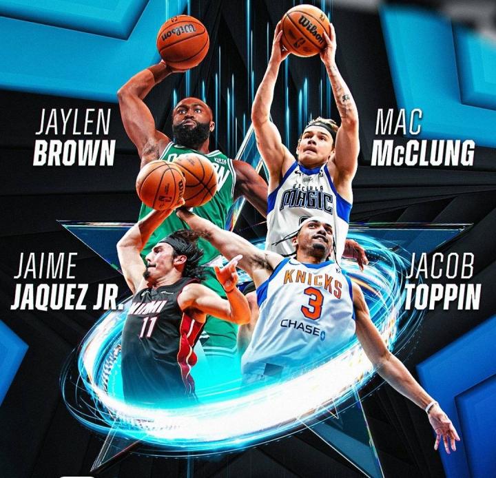 北京时间2月18日,NBA全明星周末扣篮大赛,参赛选手四人,前76人球员卫冕冠军麦克朗、凯尔特人球星杰伦布朗、前扣篮王托平的弟弟、热火新秀哈克斯。预赛战罢,杰伦布朗携手麦克朗进入决赛,最终麦克朗力压杰伦布朗成功卫冕!