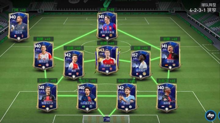 两个边前腰选择穆西亚拉与维尔茨,两人都是持球突破的好手,内切过人与挑传渗透都能制造出威胁。居中前腰选择厄德高,他的盘带手感更顺畅,灵活性更强,适合人员密集的中路环境。双后腰选择赖斯与楚阿梅尼,这对组合能最大程度保障硬度、移速与防守覆盖。