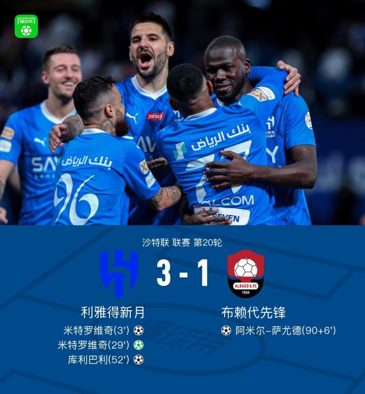 利雅得新月3-1布赖代先锋,米特罗维奇双响,库利巴利破门