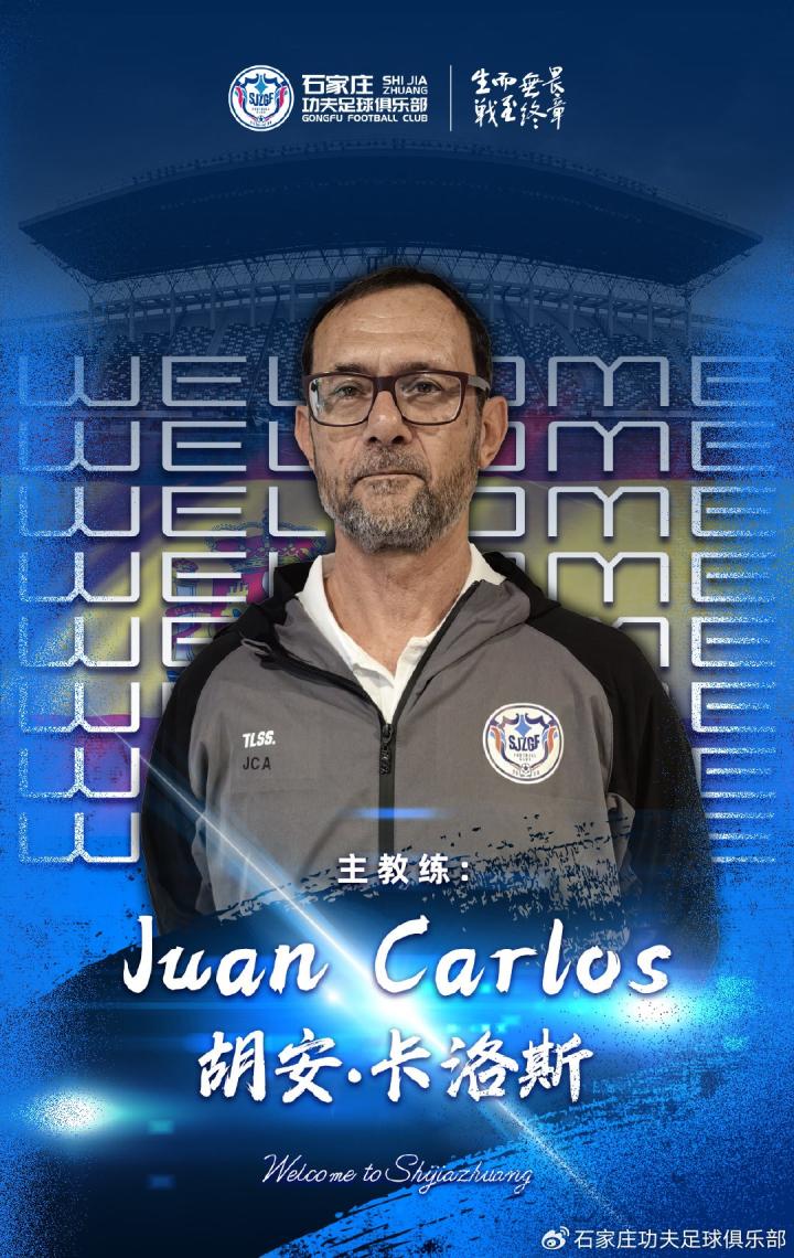 石家庄功夫足球俱乐部与西班牙籍教练胡安-卡洛斯(juan carlos)先生达成协议,胡安-卡洛斯先生将在2024赛季正式出任石家庄功夫足球俱乐部一线队主帅。
