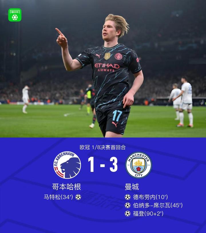 好在,经过大半赛季休养的德布劳内,甫一在欧冠登台便尽显砥柱本色。第10分钟,比利时球星一脚直取远门柱死角的贴地斩先声夺人,半场结束前,B席写意的外脚背撩射,离不开德布劳内就地反抢夺回的球权。终场时分,曼城17号再次策动攻势,福登扩大比分,帮助球队在客场吃下一粒两球在握的定心丸。