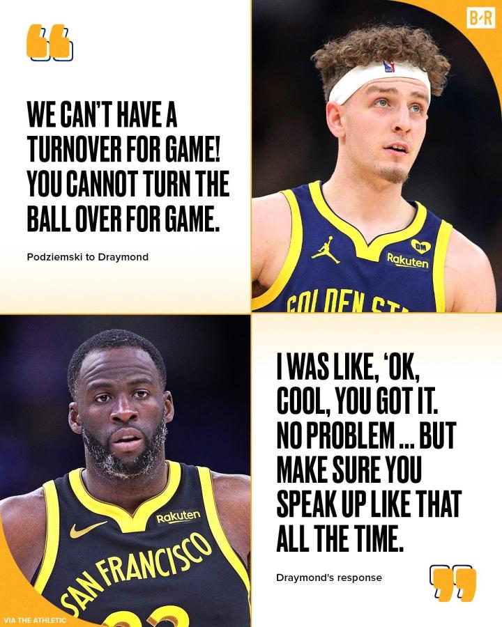 此前训练营格林因伤缺席了一个月的时间,在赛季初期第二场比赛勇士在对阵国王的比赛前,上午进行了队内训练赛。波杰姆斯基那会都不在轮换中,所以他必须跟格林一个队,最终比赛因为格林的失误最终导致输球。
