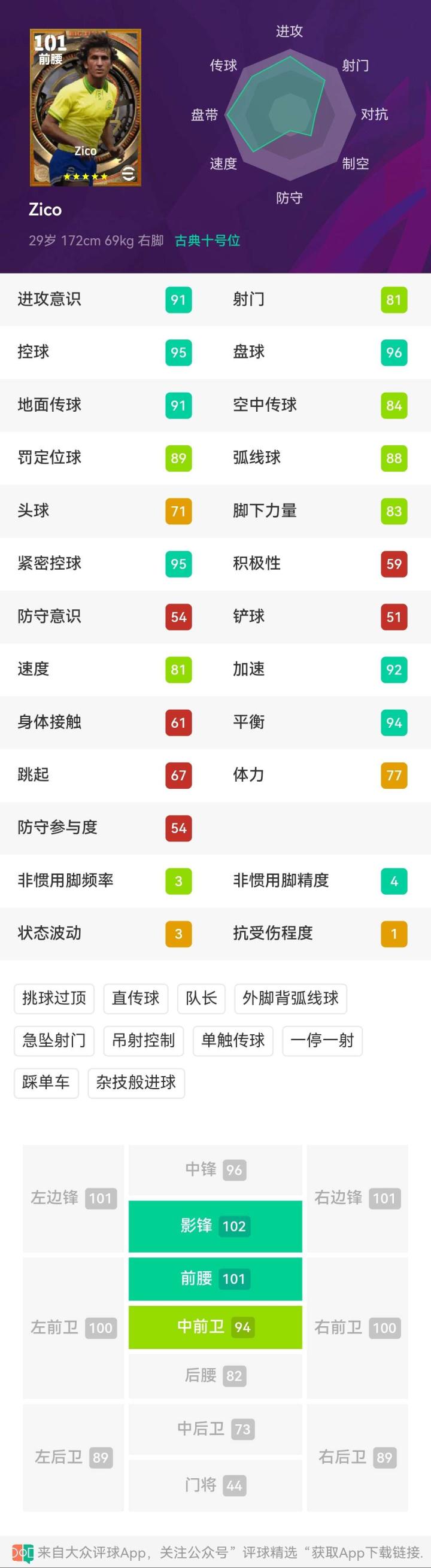 济科,巴西最强中场大师,被巴西人认为仅次于贝利和...实况足球小K @懂球帝2024-02-21 21:26济科,巴西最强中场大师,被巴西人认为仅次于贝利和罗纳尔多的巴西足球第三人。 实况里济科整体属性是很强,双速并不慢,有一点射门能力,盘控非常丝滑,但是因为风格是古典十号位,没有边锋热区跑位会比较懒,在目前实况里前腰的位置实在太卷了,如果没有好的前腰,那济科用起来还是不错的。 推荐位置:前腰,影锋(都会触发古十的风格) 推荐技能:远射/两次触球/低空传球展开更多