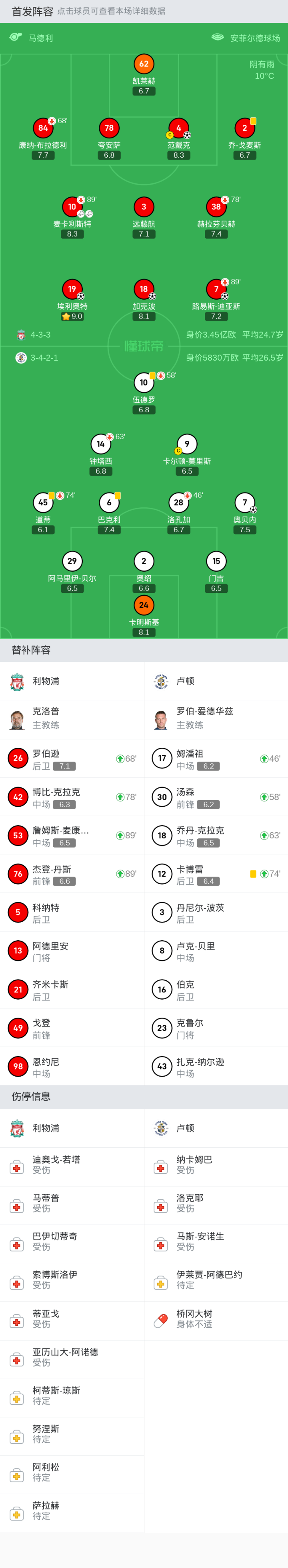 上场替补:68'26-罗伯逊, 78'42-博比-克拉克, 89'53-詹姆斯-麦康奈尔, 89'76-杰登-丹斯