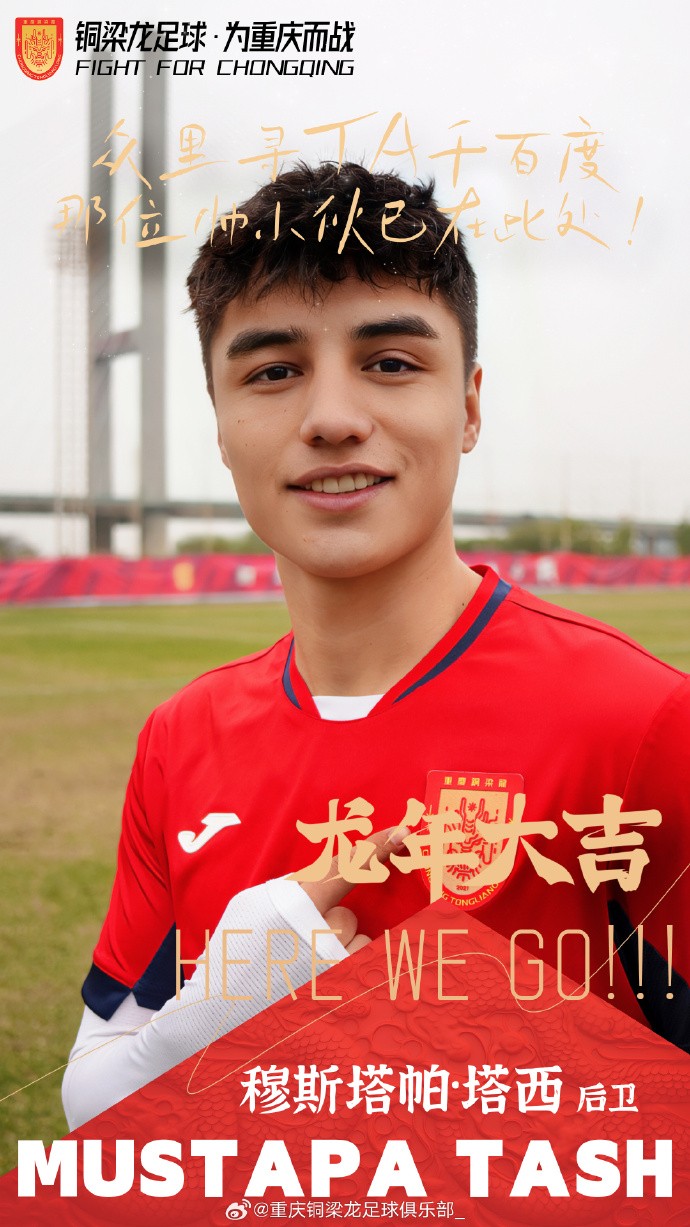 官宣:龙耀绿茵,团结一心。按照俱乐部新赛季规划部署,教练组、技术团队考虑球队阵容厚度加强的需要。经与山东泰山足球俱乐部及球员本人协商一致,即日起球员穆斯塔帕·塔西正式租借加盟重庆铜梁龙足球俱乐部。
