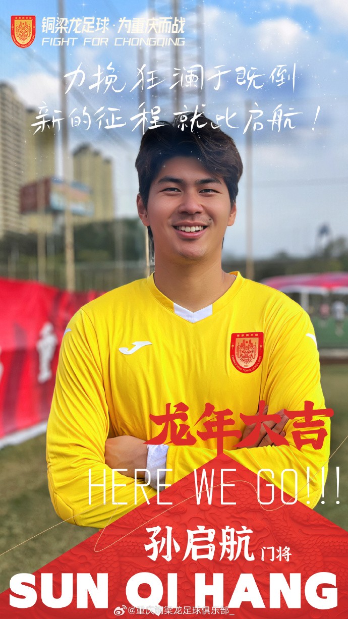 新赛季将至,期待孙启航能够潜心训练,不断提升,把握机会,在重庆铜梁龙的舞台展现本领,做出贡献。