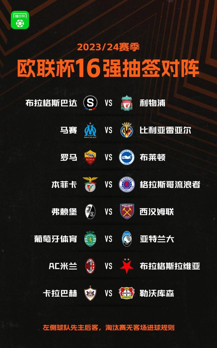 欧联1/8决赛抽签:利物浦、米兰战布拉格双雄,罗马PK布莱顿柯MVP962024-02-23 19:22北京时间2月23日19时,欧联1/8决赛抽签在位于瑞士尼翁的欧足联总部举行。以下为抽签结果:对阵结果布拉格斯巴达vs利物浦比利亚雷亚尔vs马赛罗马vs布莱顿本菲卡vs流浪者弗赖堡vs西汉姆联葡萄牙体育vs亚特兰大AC米兰vs布拉格斯拉维亚卡拉巴赫vs勒沃库森1/8决赛比赛时间首回合比赛将于当地时间3月7日进行,次回合比赛将于当地时间3月14日进行。展开更多