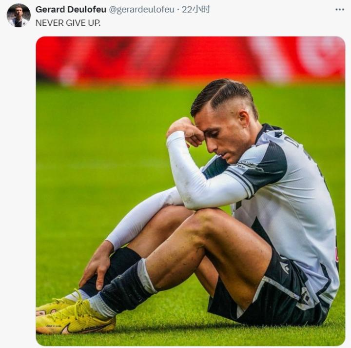 不过至少在现在,德乌洛费乌还没有放弃复出重回赛场,他在个人社交媒体发布了一张自己神色落寞的照片,并配文写道:“NEVER GIVE UP(永不放弃)”。