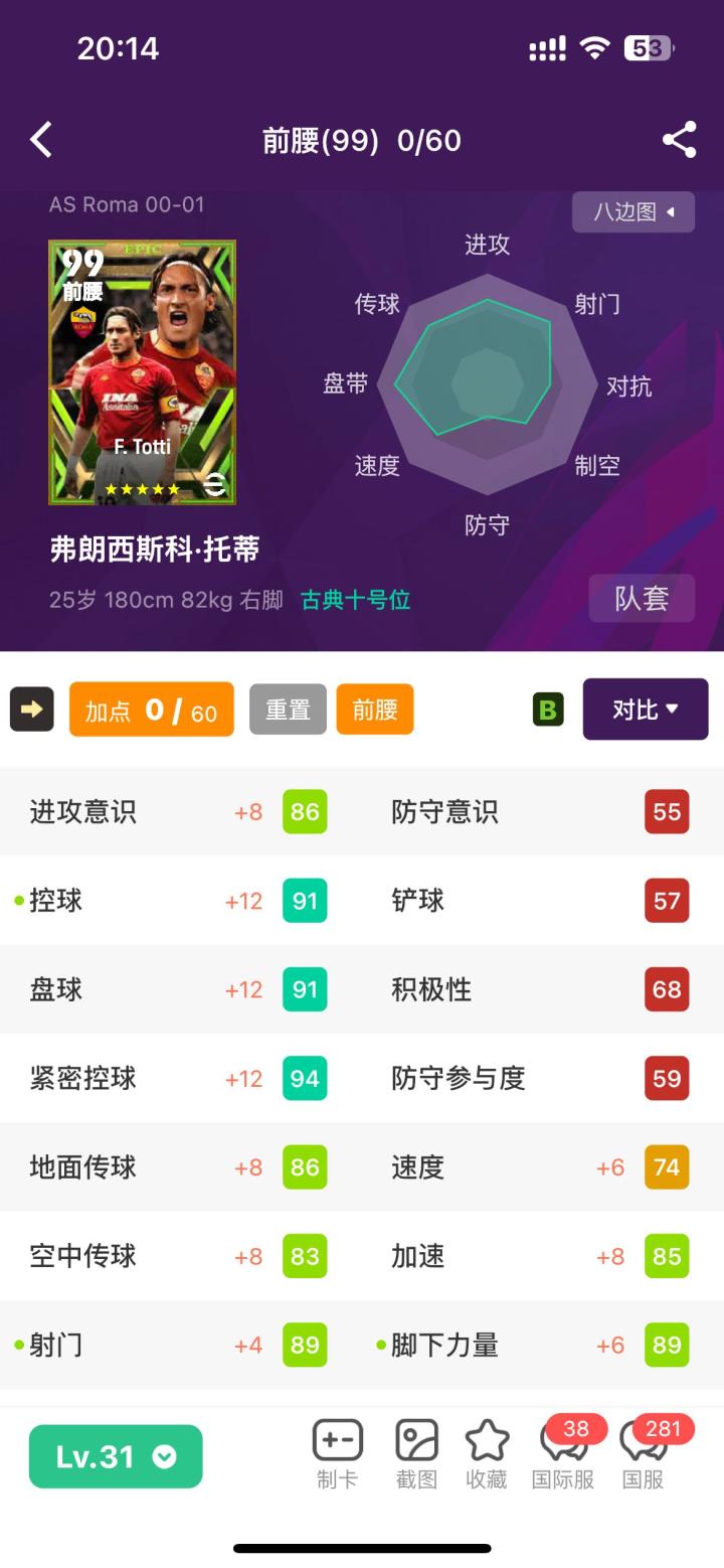 弗朗切斯科·托蒂(Francesco Totti...实况拉师傅 @懂球帝2024-02-23 20:17弗朗切斯科·托蒂(Francesco Totti)1976年9月27日出生于意大利罗马,意大利前职业足球运动员,司职前锋、前腰、攻击型中场。作为前场进攻核心,托蒂能出任前场多个攻击位置,具有优秀的组织技能、球场视野和控球能力。托蒂职业生涯全部效力于意大利足球甲级联赛罗马俱乐部。曾获得五次意大利足球先生、两次意甲年度最佳球员、2006-2007赛季欧洲金靴奖等荣誉。展开更多