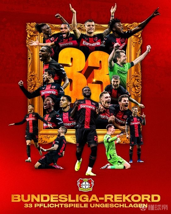 药厂2-1战胜美因茨,各项赛事已实现33场不败,同时也超越了拜仁的32场不败,创造了德国球队连续不败的纪录。