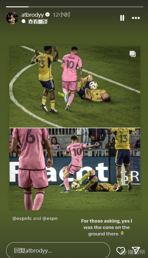 【自嘲!倒地被梅西过掉的布罗迪:没错,我就是地上那个雪糕筒】