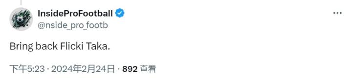 有球迷在这条动态下写道:“让弗里克回来”,还有人写“我们的主教练很快就会回来。”