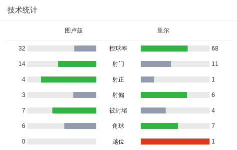 图卢兹首发:20-尼克拉斯-施密特, 2-尼古拉森, 19-马格里, 24-克里斯蒂安-卡塞雷斯, 11-塞萨尔-赫拉韦特, 6-洛甘-科斯塔, 12-卡曼齐, 80-巴比茨卡, 13-马维萨, 50-雷斯特, 25-凯本
