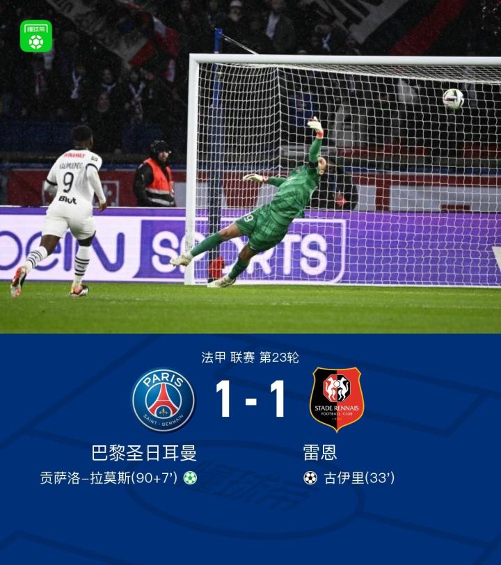 【剑南春|巴黎1-1雷恩,古伊里精彩破门,拉莫斯读秒点射救主】