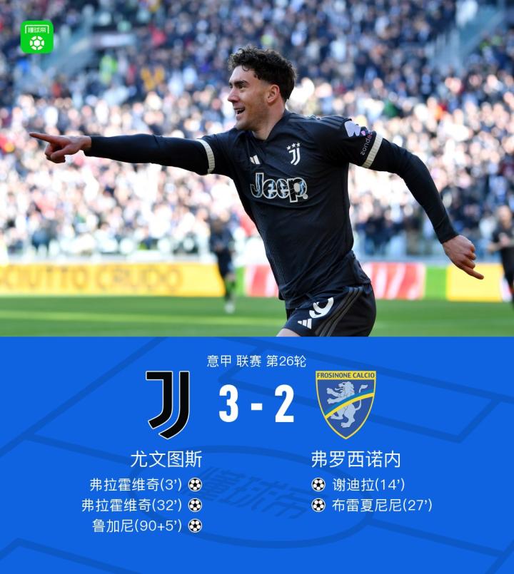 【剑南春|尤文3-2弗罗西诺内,弗拉霍维奇双响,鲁加尼绝杀】
