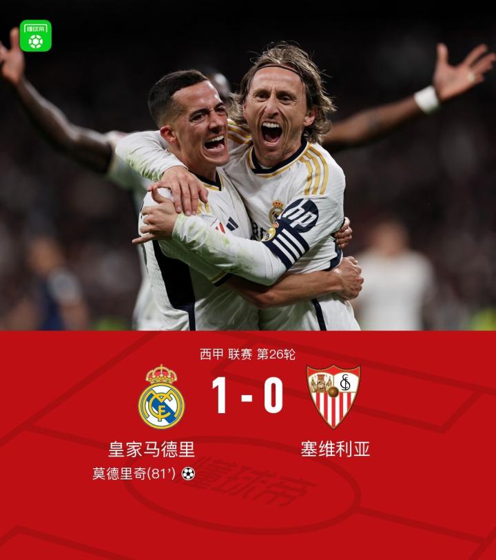 【剑南春|皇马1-0塞维利亚8分优势领跑,莫德里奇世界波制胜】