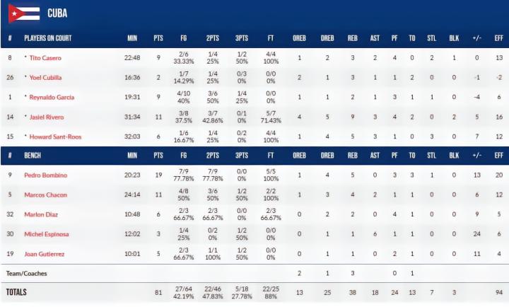 第四节,最终古巴男篮81-67战胜美国男篮