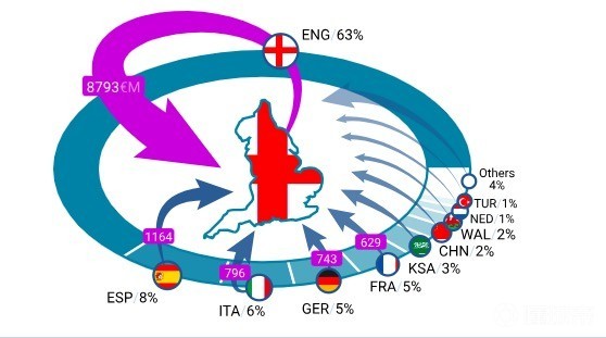 20个足球主要市场海外转会收入:英超全球买人,中国比例最低