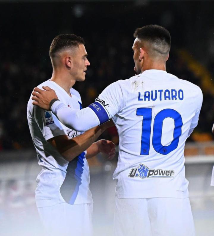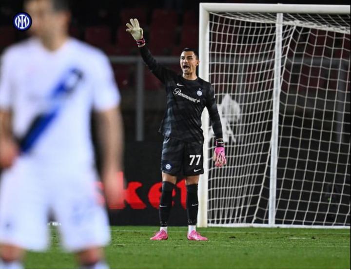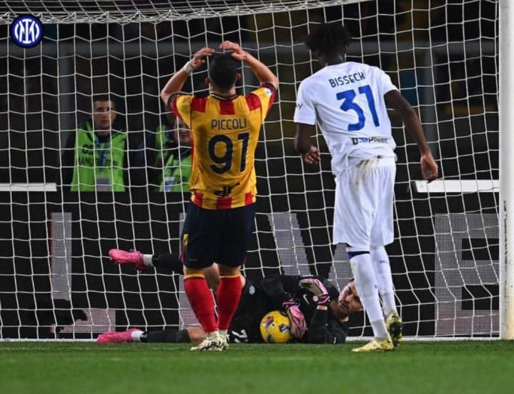 也许是前两场两个对手没有射正过球门哪怕一次,凄风冷中的夏天哥感冒了,不得已启用二门。因此身披网红留下的77号,奥代罗的首秀在莱切主场上演,和后卫从后场发起的传球推进很默契,看来二门在日常训练也没有松懈过,和索默的出球动作和速率感觉有点神似。