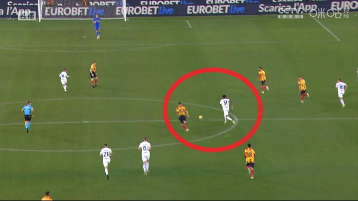开场阶段对手狠抢猛攻他这条边,这孩子一点不怵,面对对方的主力攻击点森索内,一个身体就碾压过去,强!