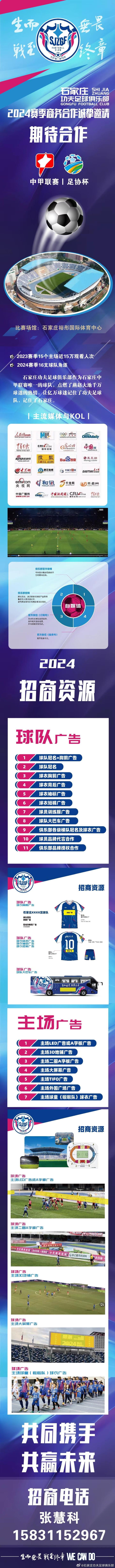 石家庄功夫发布2024赛季商务合作邀请,招募球队冠名商ETChalmers @懂球帝2024-02-26 21:52中甲俱乐部石家庄功夫发布2024赛季商务合作邀请,包括招募球队冠名商。石家庄功夫官方写道:“石家庄功夫足球俱乐部是一家拥有深厚历史和文化底蕴的职业足球俱乐部。俱乐部自成立以来,一直致力于为中国足球奋斗、为中国足球培养后备力量,为石家庄这座城市带来更多的荣誉和自豪。即将到来的2024赛季,我们期待与志同道合的企业携手合作,共向辉煌,与我们一起开启足球事业的新篇章。”展开更多