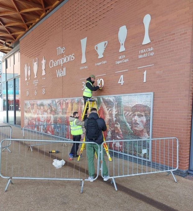 9→10,英联杯夺冠后,利物浦冠军墙今日已更新ETChalmers @懂球帝2024-02-26 23:08在夺得队史第10座英联杯冠军后,利物浦主场的冠军墙在今天更新。2024年英联杯决赛,利物浦凭借队长范戴克在加时赛攻入的制胜一球,1-0击败切尔西夺冠。这是利物浦队史第10次夺得英联杯冠军,为历史最多。今日,利物浦球迷博主“Anything Liverpool”晒出照片称,利物浦在安菲尔德球场的冠军墙已更新,其中英联杯冠军奖杯下的数字从“9”改成了“10”。展开更多