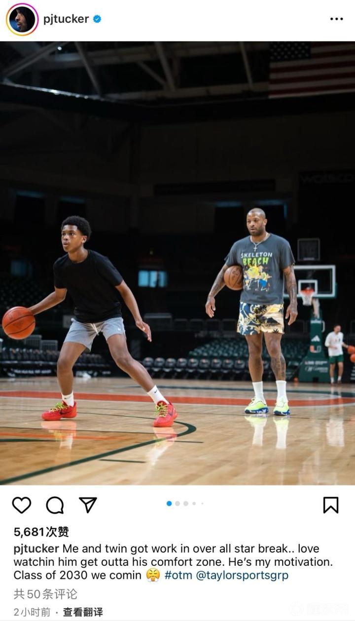 北京时间2月27日,今日快船队球员PJ-塔克更新社交媒体,他晒出了自己与12岁儿子小塔克的训练照和视频,并配文:“我和我的双胞胎在全明星期间练练,喜欢看他走出舒适区,他是我前进的动力,2030届选秀我们来了😤”