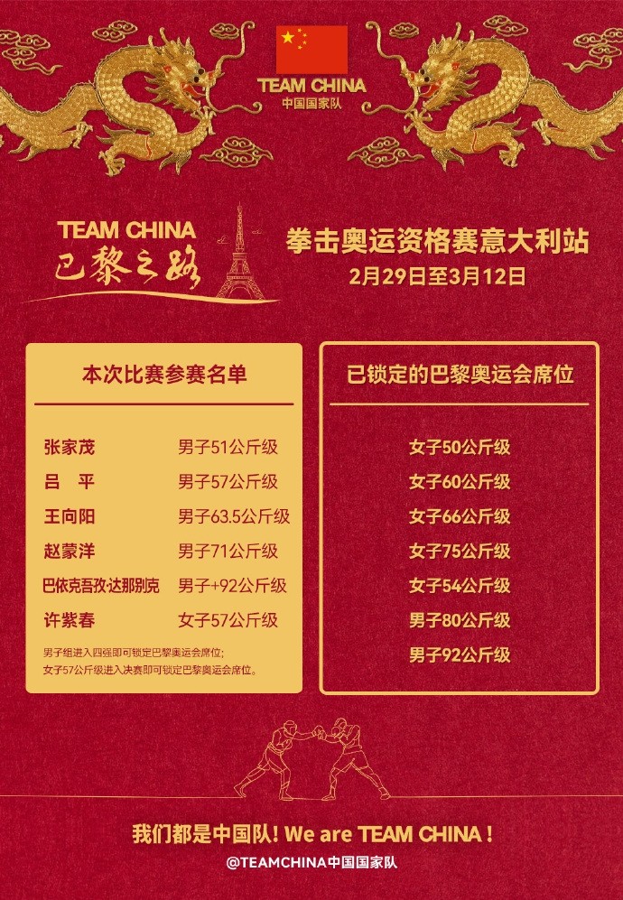 拳击奥运资格赛意大利站2月29日开赛,6名中国选手出战
