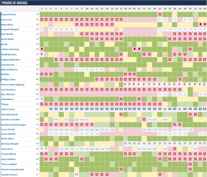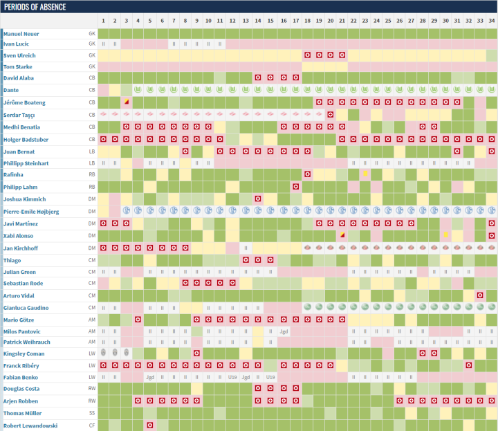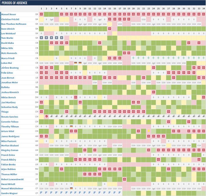 看过拜仁时间久的小伙伴都清楚,拜仁常年以来,其实最大的问题就是伤病原因,就近十年而言,每当拜仁在赛季中后期进入冲刺阶段时,都会遇到人员不整的问题。