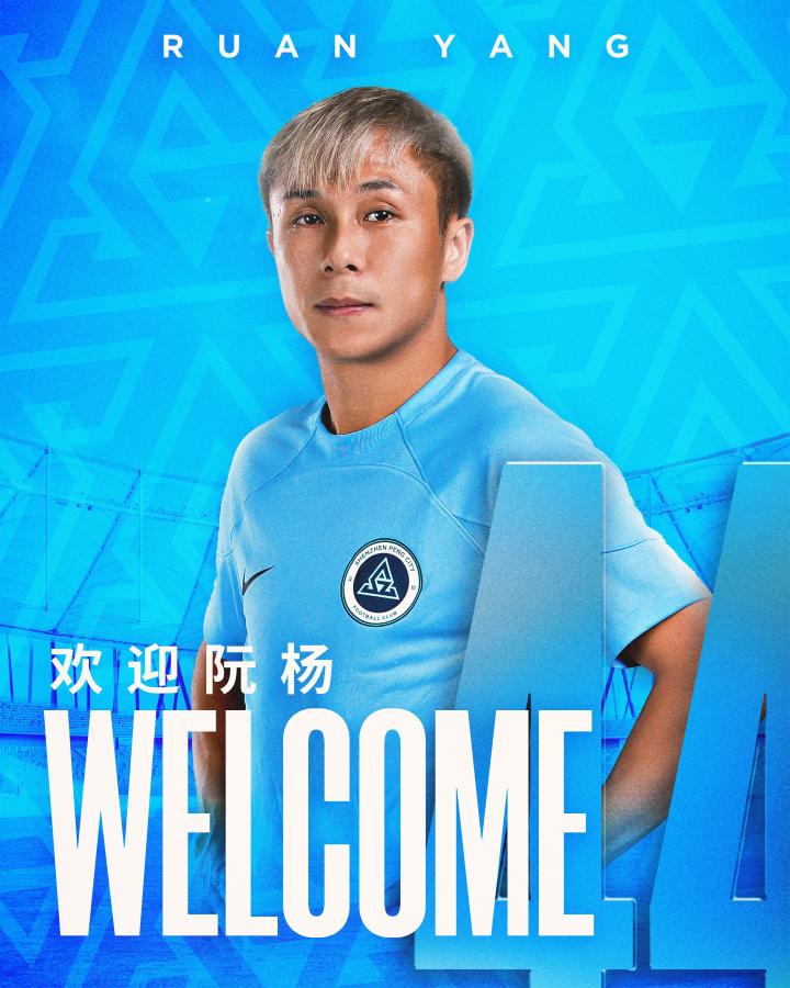 欢迎阮杨加盟深圳新鹏城足球俱乐部!
