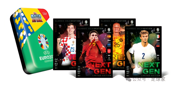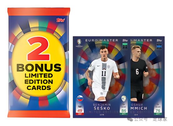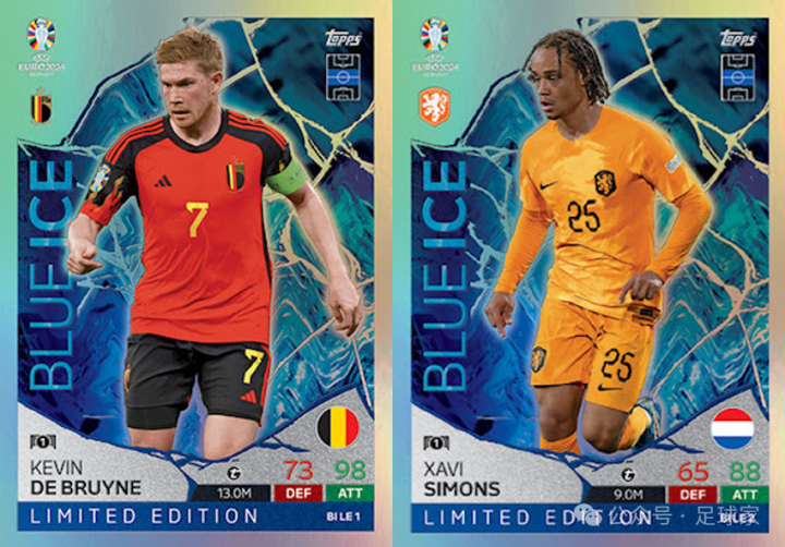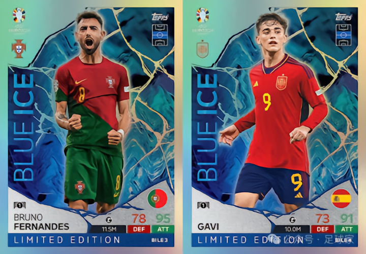共9人,插入比例1:36包,相当于盒货,在今年欧冠Match Attax出现并受到好评的大比例插入特卡,并且还有基于此模板的自定制打印卡,很受卡迷们的欢迎。这次欧洲杯的能量特卡由亚马尔的国家队皮首款新秀卡领衔,并且还有4种带编平行,分别是蓝折(50编)、橙折(25编)、黑折(5编)、金折(1编),具体名单如下: