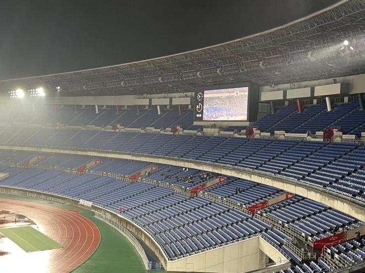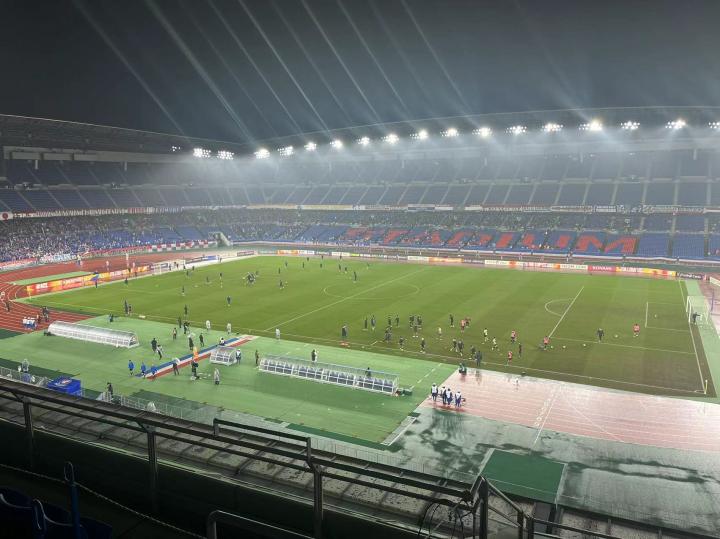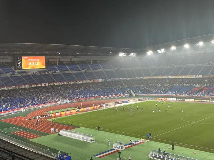 昨天一起在川崎看亚冠的我们这群山东球迷又有十个人左右来看这场比赛,大家的球票都买在了同一个区。由于是周中和下雨的原因,这场比赛的上座率不高,只有8343名观众到场,客队球迷也是寥寥无几,偌大的球场显得十分空旷。但这场亚冠横滨水手俱乐部依然搞了带灯光秀的赛前表演和入场仪式,而号称J联赛前三的横滨水手死忠球迷的战斗力也绝对在线,全场歌声不止,唱跳不息,曲库也是十分丰富,把足球场变成了演唱会。