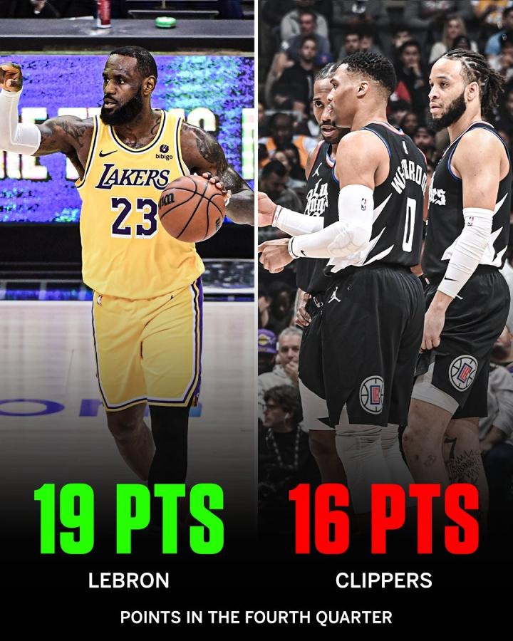 本场詹姆斯末节独得19分,而快船全队仅得到16分。