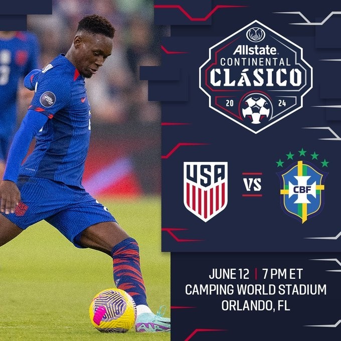 北京时间2月27日,美国男子国家队宣布将于6月12日在佛罗里达州奥兰多的露营世界体育场举行一场与巴西队交手的友谊赛。