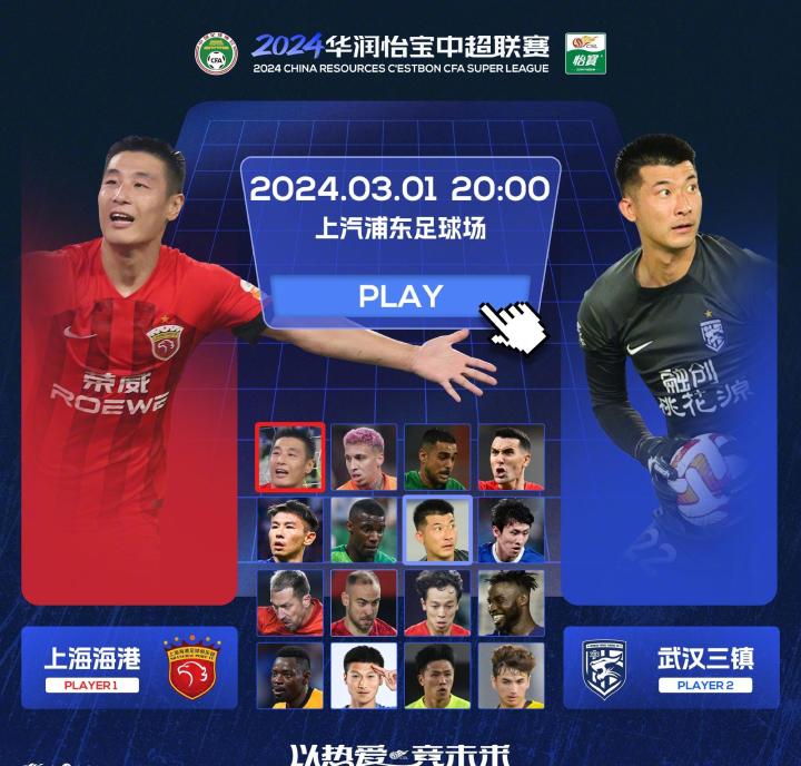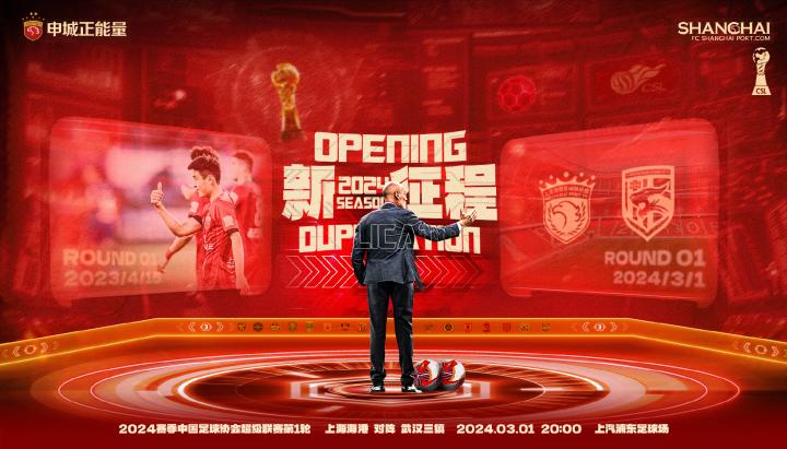 3月1日20:00,在2024赛季中超联赛的揭幕战中,卫冕冠军上海海港坐镇主场上汽浦东足球场,迎战2022赛季冠军武汉三镇。2月29日,上海海港官方发布了此役的赛事海报,海报的主题是:新征程。