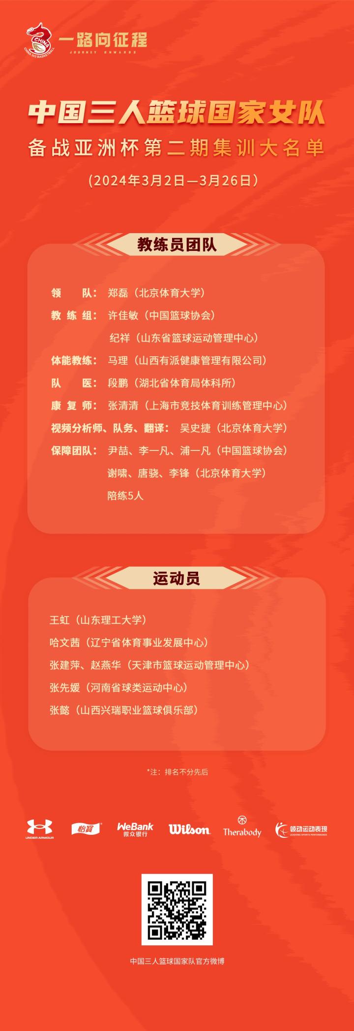 2月29日,中国三人篮球国家队官方消息,为备战2024年国际篮联三人篮球亚洲杯,中国三人篮球国家女队将组织第二阶段集训。