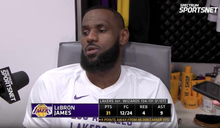 北京时间3月1日,NBA常规赛,湖人主场134-131战胜奇才,赛后,湖人队球员勒布朗-詹姆斯接受了记者的采访,谈到了即将打成4万分的意义。