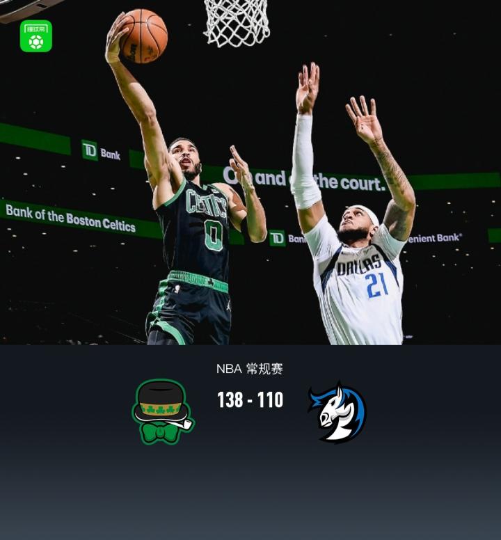 NBA战报:凯尔特人138-110独行侠取10连胜,东契奇空砍37分