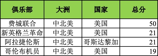 (图)世俱杯中北美区积分榜