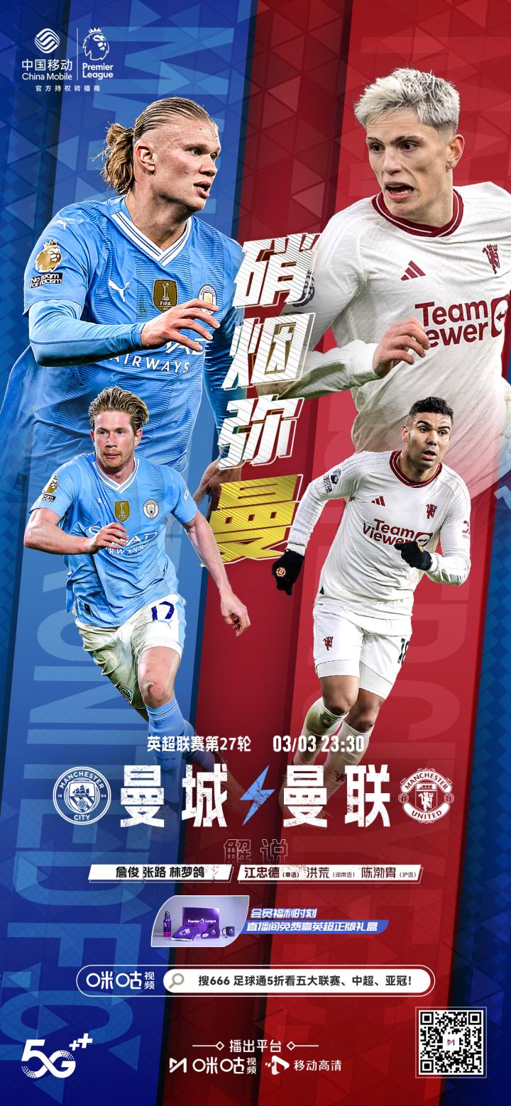 今晚曼市德比,还是永远滴黄金搭档,詹俊、张路解说 咪咕体育 咪咕体育2024-03-03 08:42今晚锁定咪咕视频,黄金搭档:詹俊&张路带来独家评述曼城vs曼联3月3日23:30直播平台:咪咕视频足球通全新升级!新增中超观赛权益,加送NBA+CBA篮球观赛包!现在订购首月只需5折!免广高清畅看五大联赛、中超、亚冠、NBA、CBA,畅享足篮精彩赛事!展开更多