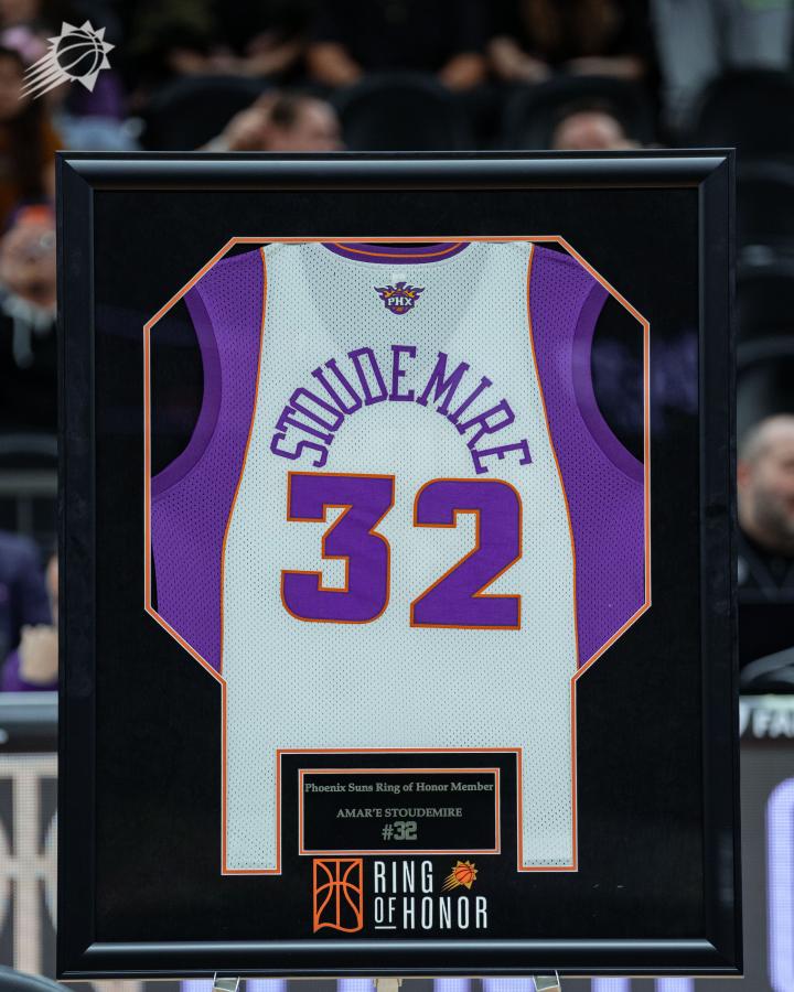 北京时间3月3日,NBA球队菲尼克斯太阳正式退役球队名宿阿玛雷-斯塔德迈尔的32号球衣。