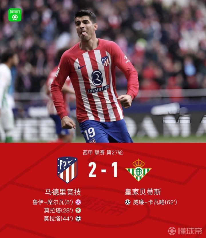 【马竞2-1贝蒂斯,莫拉塔头球破门+失点,威廉-卡瓦略世界波】