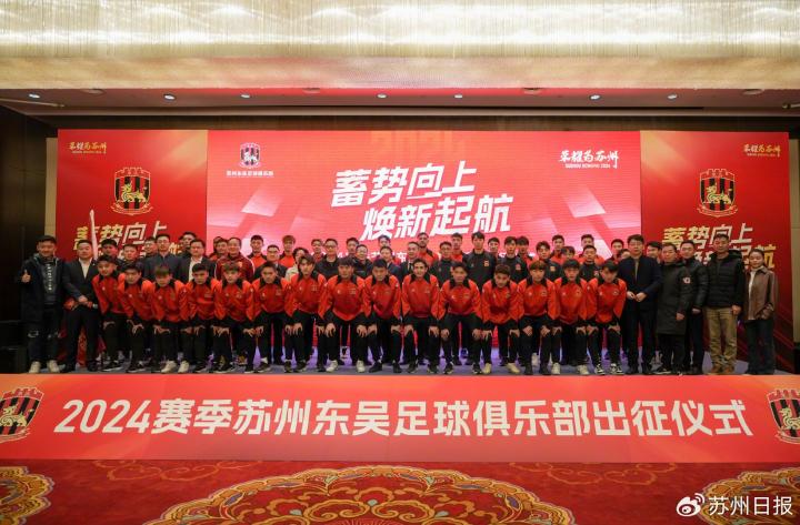 蓄势向上,焕新起航,今天(3月4日)上午,2024赛季苏州东吴足球俱乐部出征仪式在香山国际大酒店举行。
