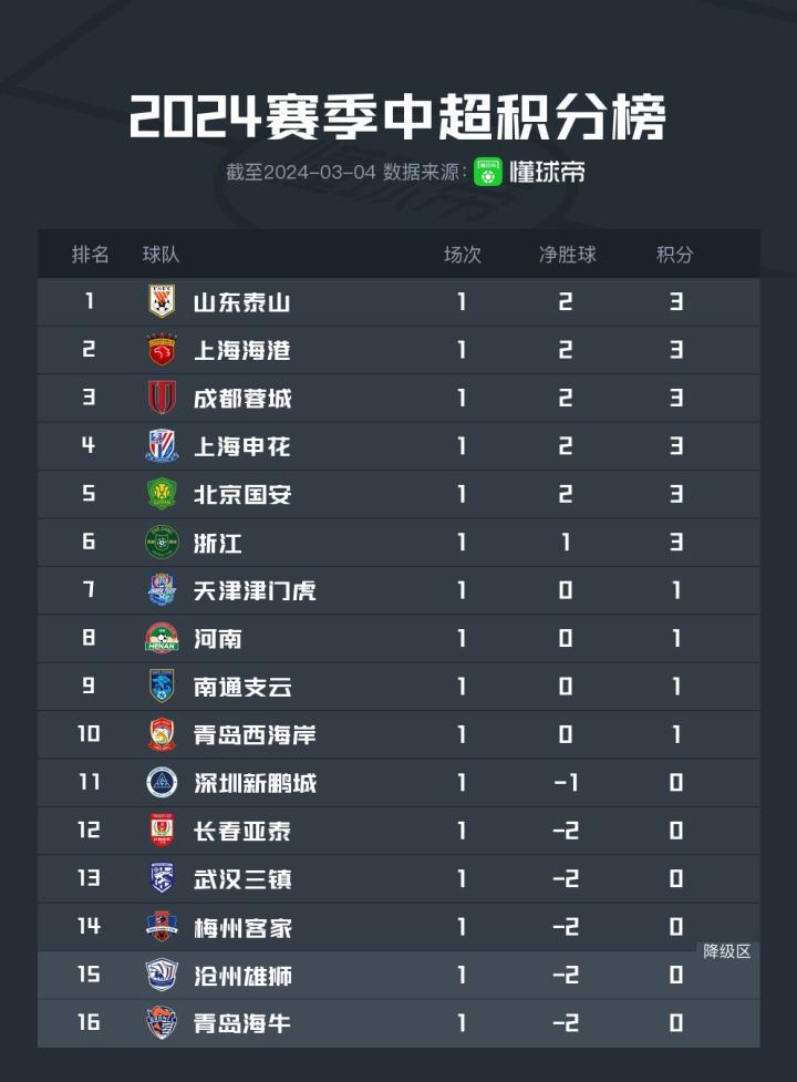 北京时间3月3日,新赛季中超联赛首轮落下帷幕。自然而然,各大媒体和中超官方就都需要制作并发布积分榜海报来对首轮比赛进行一番总结。但同是积分榜,各家的排名似乎总是不尽相同,那中超积分榜究竟应该怎么排?