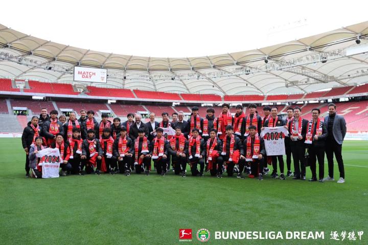 2月24日,球队抵达斯图加特并造访MHP大球场。中国驻德国大使吴恳与球队官员、德方代表一同展示了德甲T恤,并同大家在绿荫场上合影留念。中国U-16的小伙子们现场观看了斯图加特对阵科隆队的比赛。