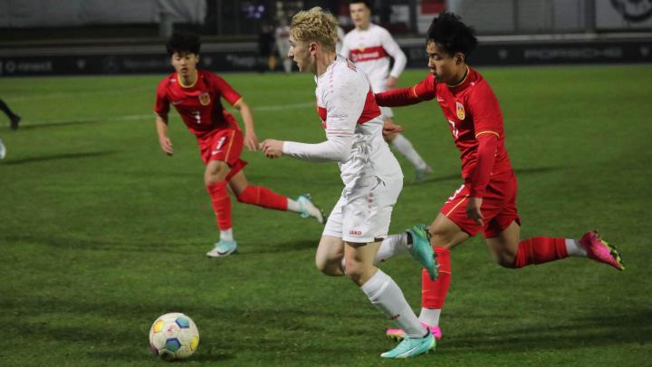 率先进行的一场比赛里,斯图加特U16/U17混编队以2-0的比分击败了中国U16。据悉,斯图加特U17在德甲U17联赛(南部/西南地区)积分榜排名第三。双方带着0-0的比分进入到中场。下半场开始,中方教练组进一步加强了高位压迫,下半场后半阶段,斯图加特U-17梯队通过定位球破门得分,随后中国队加强了进攻,但斯图加特在终场前通过直塞、造点再下一城,最终2-0战胜中国U16男足。