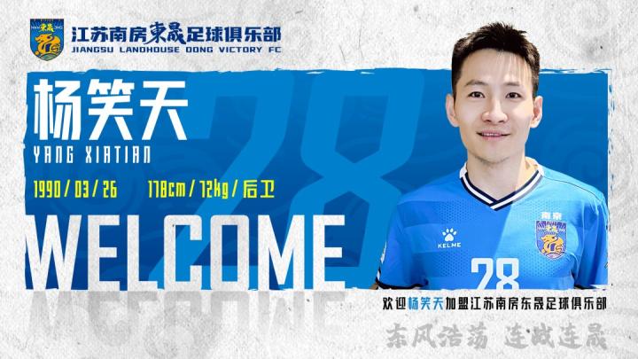 拥有丰富的中超经验,江苏南房东晟足球俱乐部希望杨笑天,新赛季可以在球场上,与所有队友一起,为长期关注与支持我们的球迷朋友以及社会各界,奉献上一场又一场精彩的比赛!