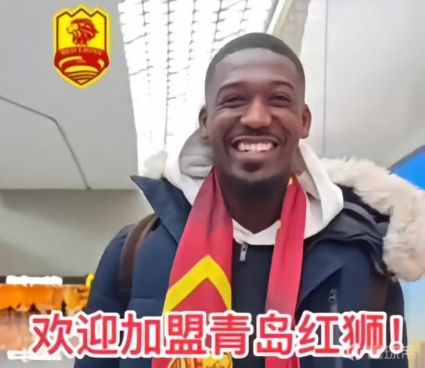 抵达青岛机场后,萨诺戈面带微笑,披上了新东家青岛红狮队的围巾,并且举起青岛红狮队的球衣。