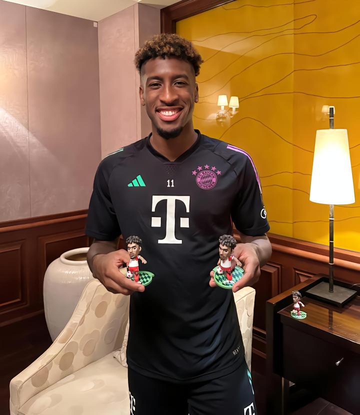 穆西亚拉和王牌化身拜仁潮玩盲盒以及球员MoneyBall 手办合影